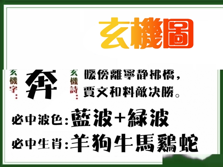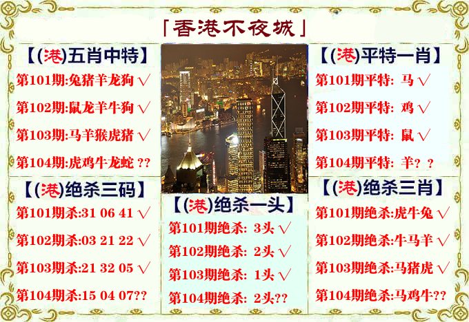| 104期: ⑤肖 | 鸡猪虎蛇羊 | ????中 |