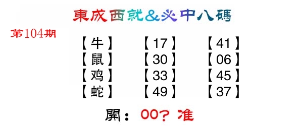 104期: ⑧肖 鸡猪虎蛇羊兔鼠狗 猴23中
