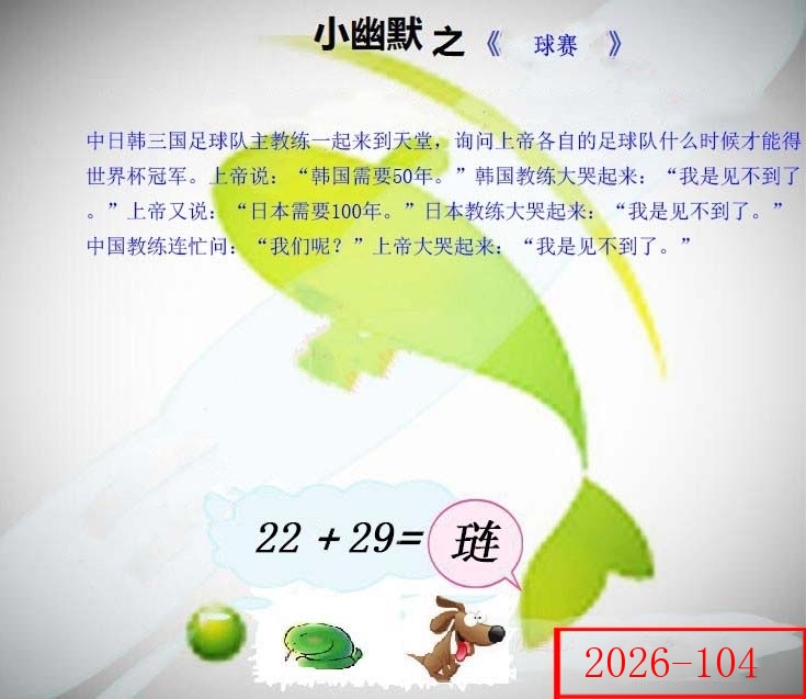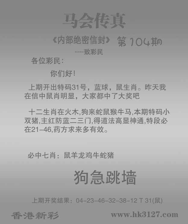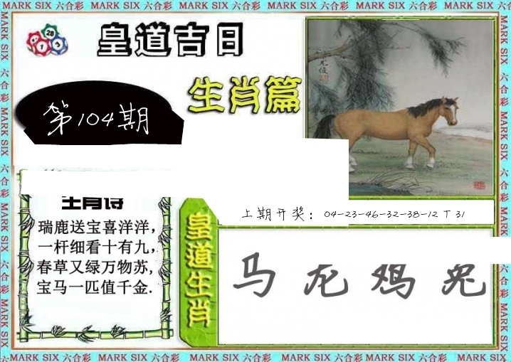 | 104期: ⑨肖 | 鸡猪虎蛇羊兔鼠狗马 | ????中 |