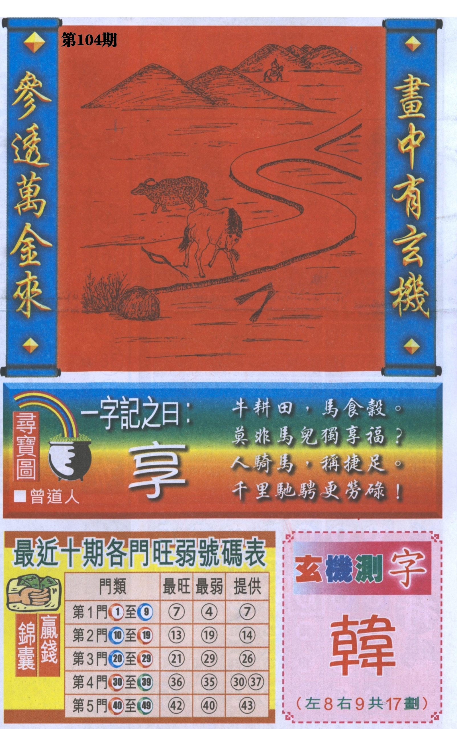 104期: ⑤肖 鸡猪虎蛇羊 猴23中