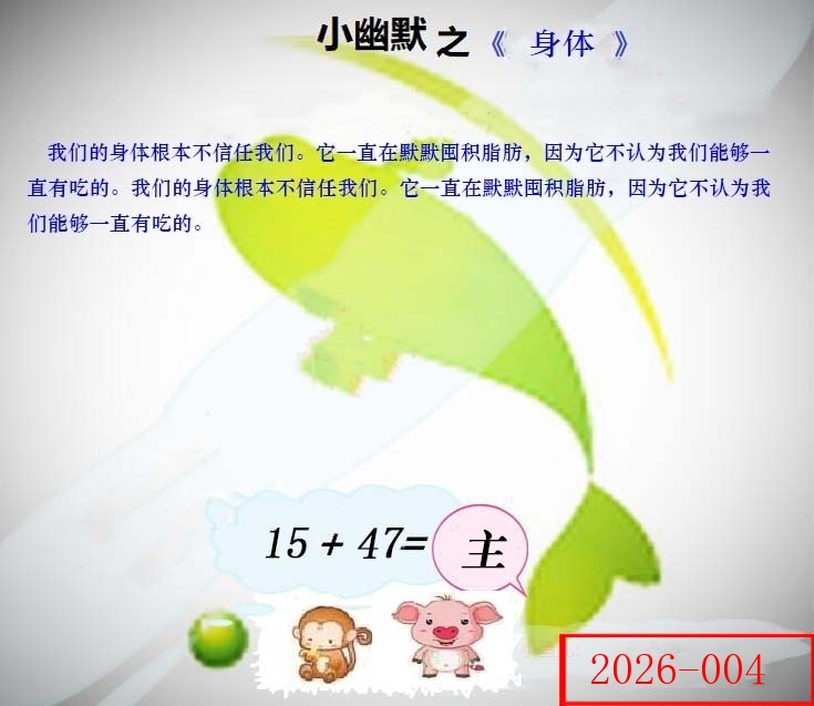 | 004期: ⑨肖 | 马虎龙蛇猪鼠羊牛猴 | 猪19中 |