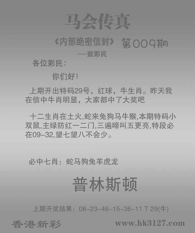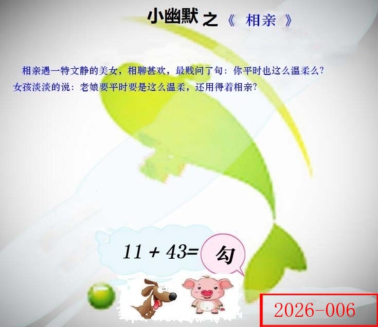 | 006期: ⑨肖 | 马虎龙羊蛇狗鼠鸡兔 | 狗32中 |
