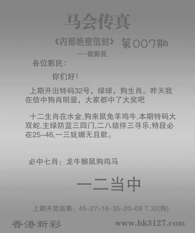 | 006期: ⑦肖 | 马虎龙羊蛇狗鼠 | 狗32中 |