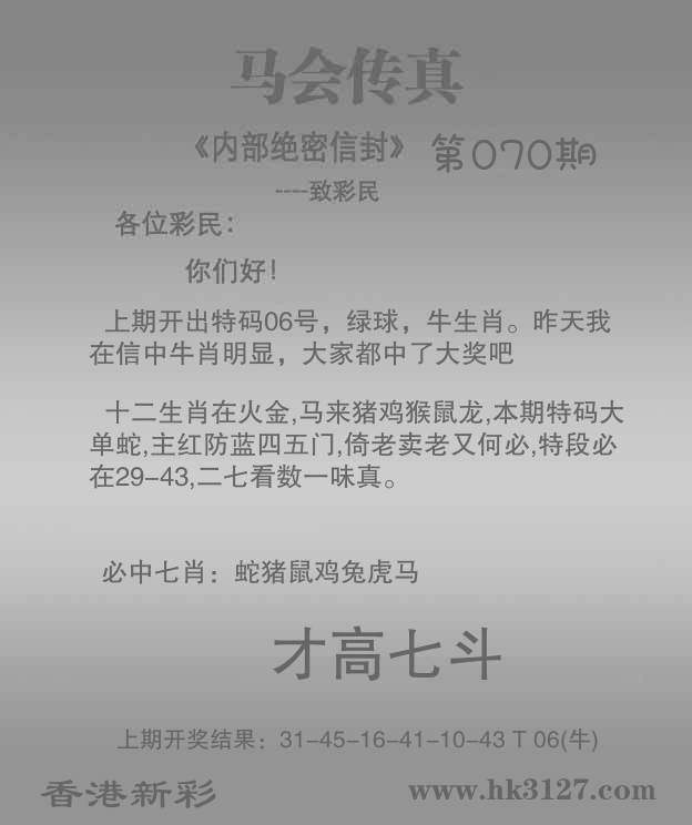 | 010期 | 虎 | 6尾 | 蓝双 | 27-36 | 49蛇 |