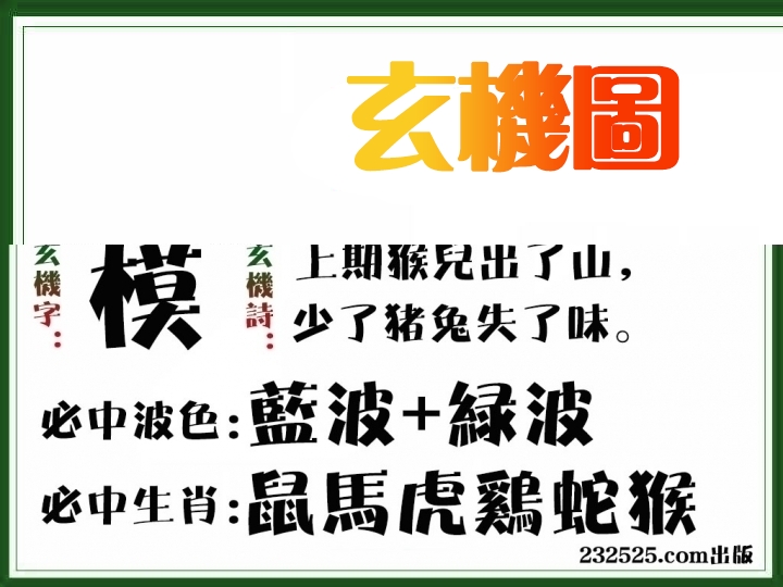 | 013期: ⑥肖 | 猴羊猪鸡牛蛇 | ????中 |