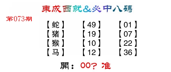 | 011期: ⑧肖 | 龙鼠马鸡猴狗蛇羊 | 猪07中 |