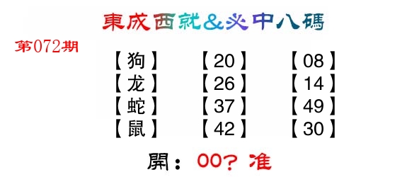 | 072期: ⑧肖 | 牛猪马狗鼠龙羊虎 | ????中 |